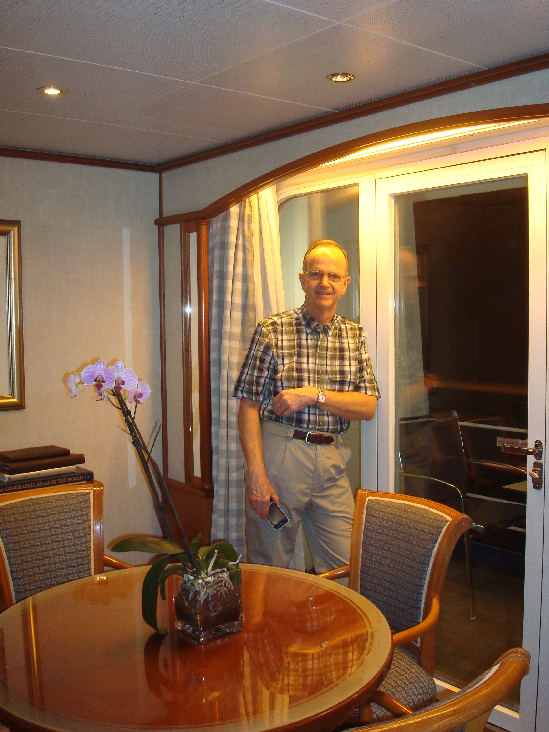 On the occasion of our twentieth wedding anniversary some years ago, we decided to treat ourselves to a Royal Suite on a Celebrity cruise ship and we’ve never been able to go back to a smaller stateroom. So, we are looking for value when we choose an experience. In the case of moving to smaller ships, we first tried Regent – first the Navigator (490 passengers) and then the Mariner (700 passengers)[1] – then ended up earlier this year on a Silversea ship, the Silver Cloud with all of 296 passengers. What an experience that was! Even if you can’t afford a Silversea cruise, or a Silver suite on board, come along with us and we’ll tell you what it’s like.