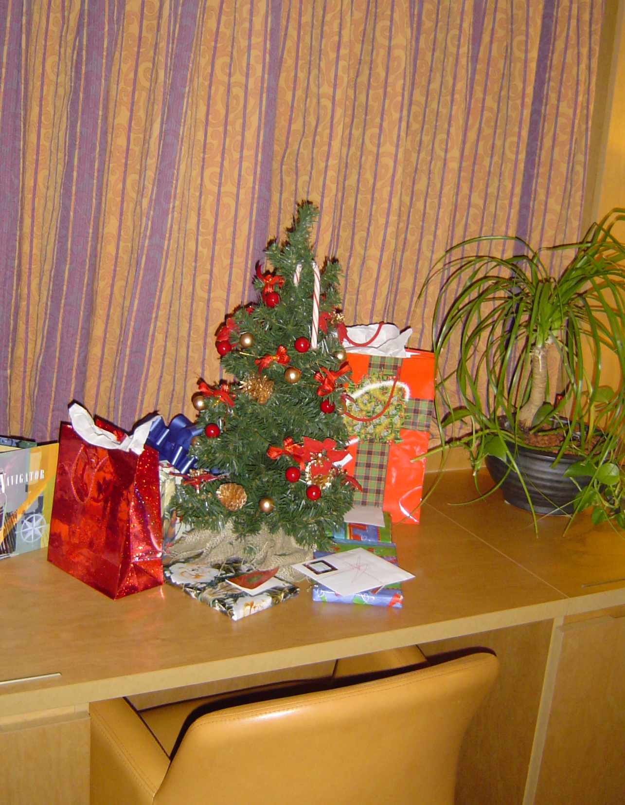 So, Christmas shopping took place on Christmas Eve as we all split up and sneaked around the shelves laden with the inevitable perfume, jewelry (both fine and other), T-shirts, cruise-line emblazoned mugs and all the rest of the bits and pieces that the boutiques sell. The wrapping was very interesting as we cajoled the shop people into parting with a few Christmas decorations to adorn the boxes. It was wonderful! Even sixteen-year-old Ian took his job seriously.