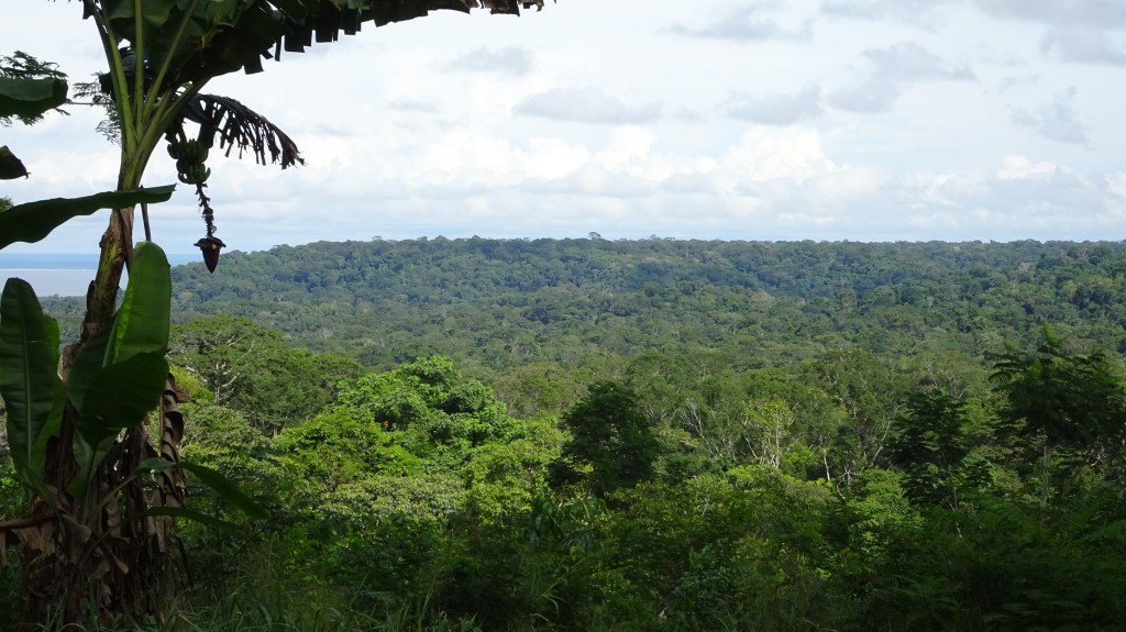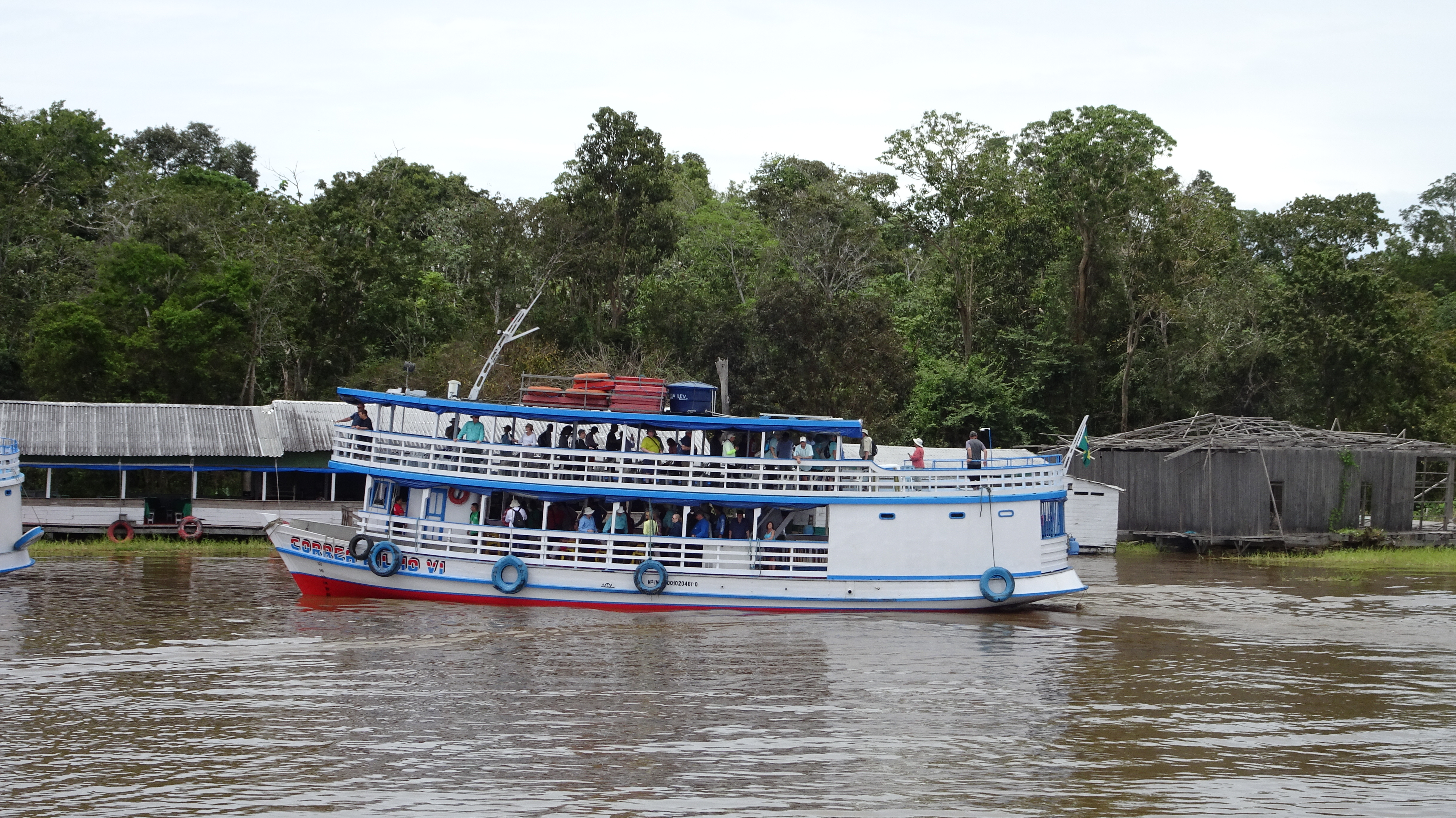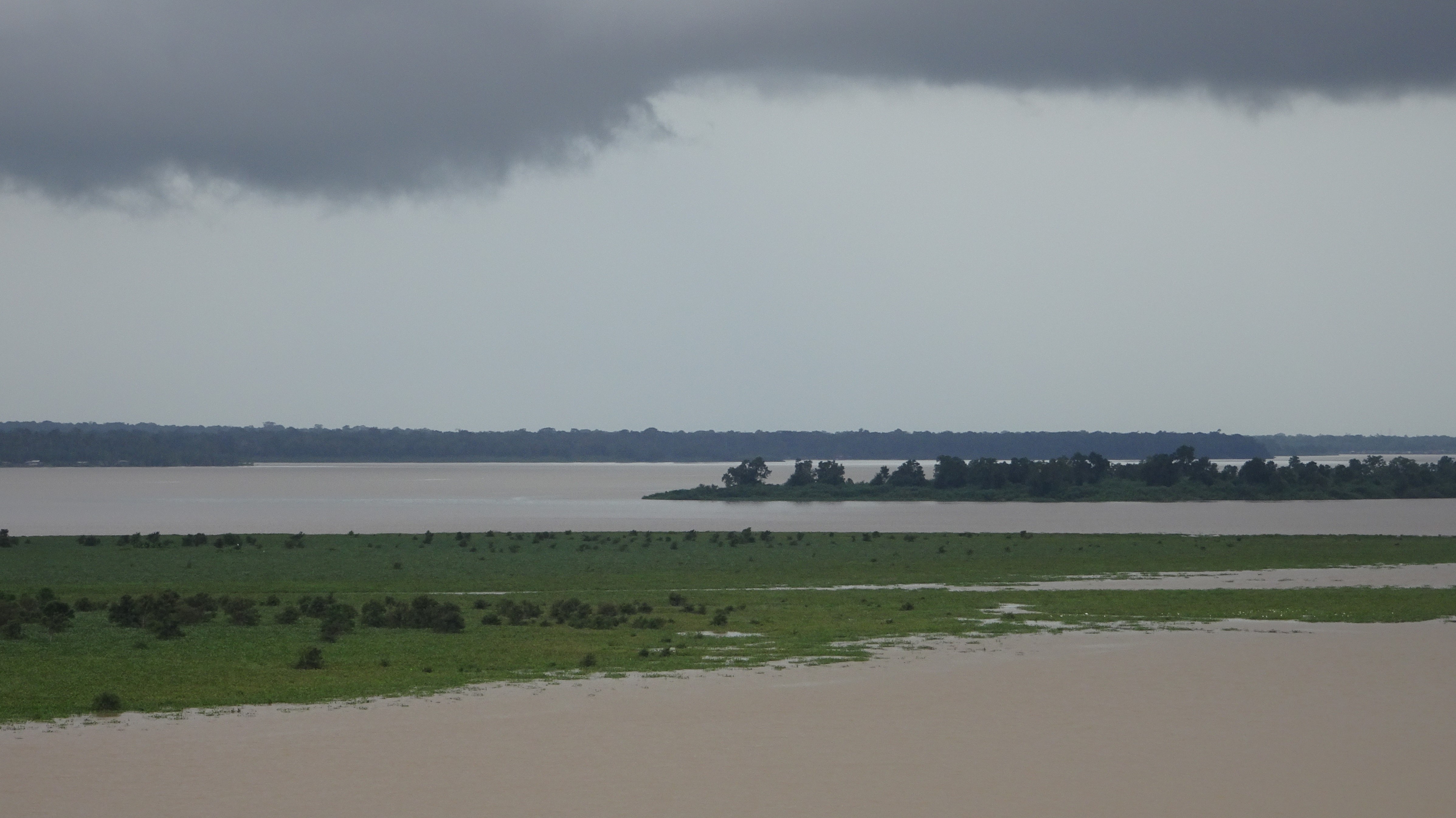 As we slowly made our way into the river (which is miles wide at this point), we passed hundreds of kilometres of shoreline showing dense rainforest—or, to be more precise, the tops of the trees of the rainforest canopy. Although the river was not extraordinarily high at that time, it was still high enough that we saw only the canopy as we glided by.