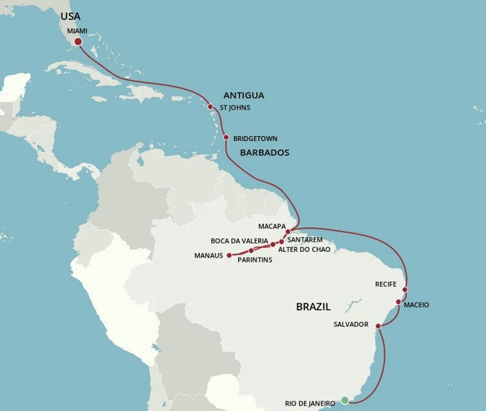 First, we considered flying into Manaus, the city 1500 kilometres from the Atlantic and the spot beyond which you can travel only in a small riverboat. In the end, we decided to book a cruise out of Rio (so we could visit Rio before the cruise), up the coast of Brazil and into the river to Manaus. It then turned around and travelled back, ending in Miami three weeks later.