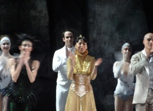 Then we head back to the hotel to get dressed. We’re going to the ballet this evening. We don our finery and make our way to the Grimaldi Forum with what appears to be the majority of the Monagasques themselves. Situated on the shore of the Mediterranean, the building is actually built right into the Med with the main performance space where we’ll see Les Ballets de Monte Carlo dazzle their home crowd below sea level. Down, down, down, three very long escalators to reach the entrance to the orchestra seating. We sip more champagne while we people watch. Can there be a more decadent place to people watch than MC?