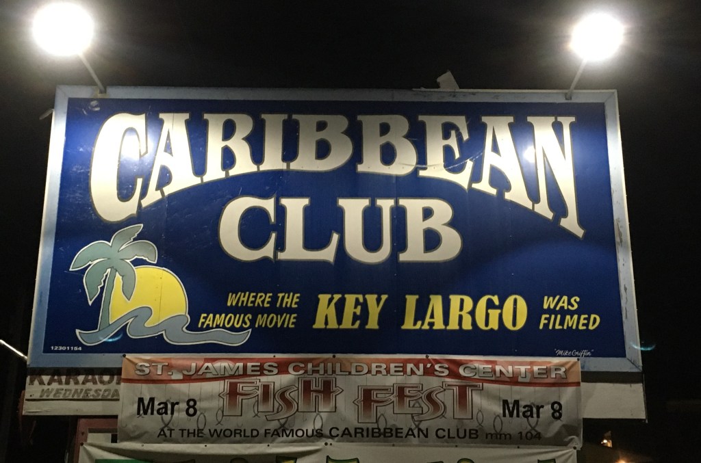 One of the nearby bars is The Caribbean Club that bills itself as the filming location for Key Largo the movie back in the late ‘40s. Subsequent research, however, suggests that the movie was almost entirely filmed on the Warner lot with only the opening scenes filmed on location in Florida. We’d have to go back and watch the move again to see if this bar really figures in. If it doesn’t, it probably should.